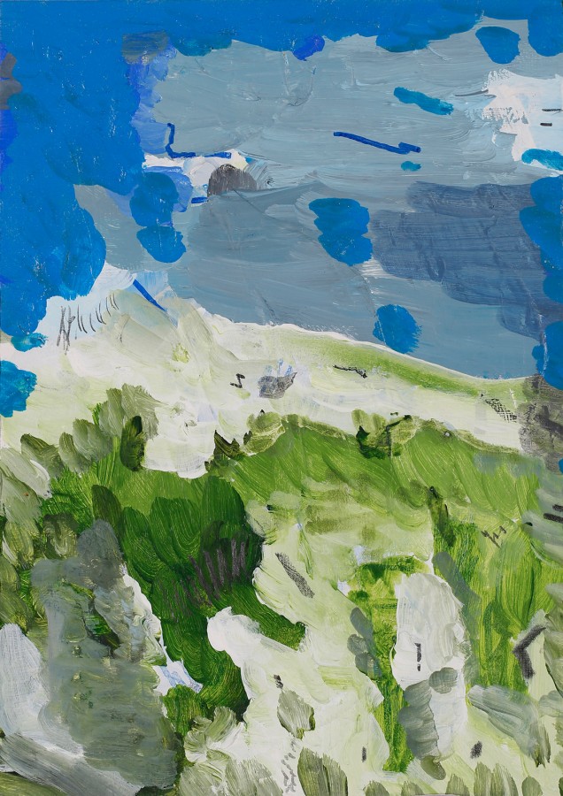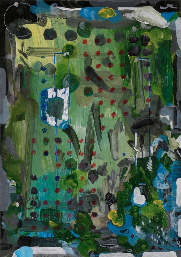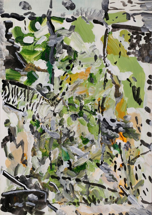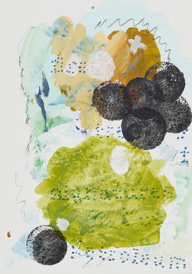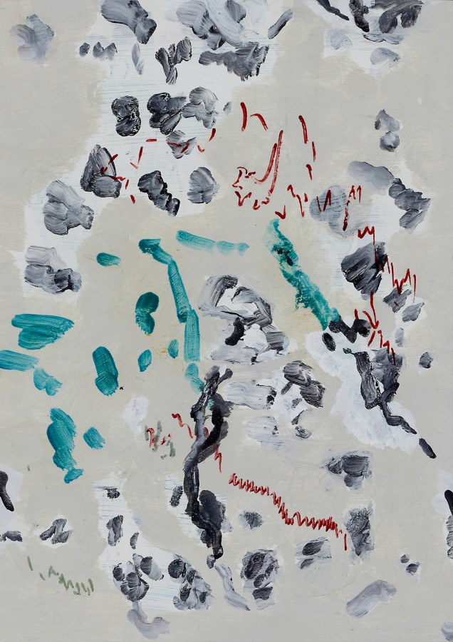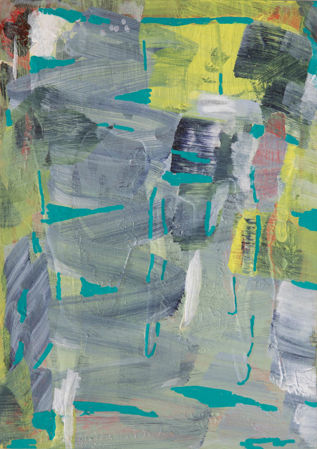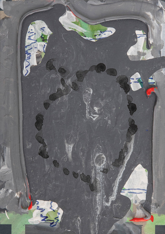 Acrylic, ink and marker on greyboard, 14.9 × 21.1 cm