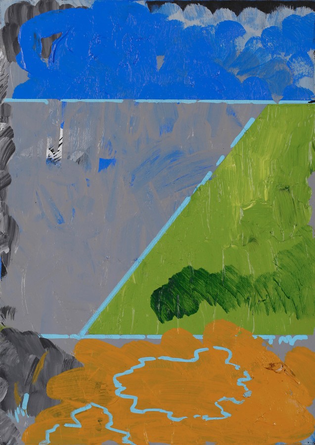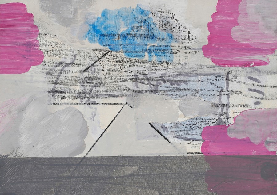 Acrylic, ink and marker on greyboard, 14 x 20.1 cm
