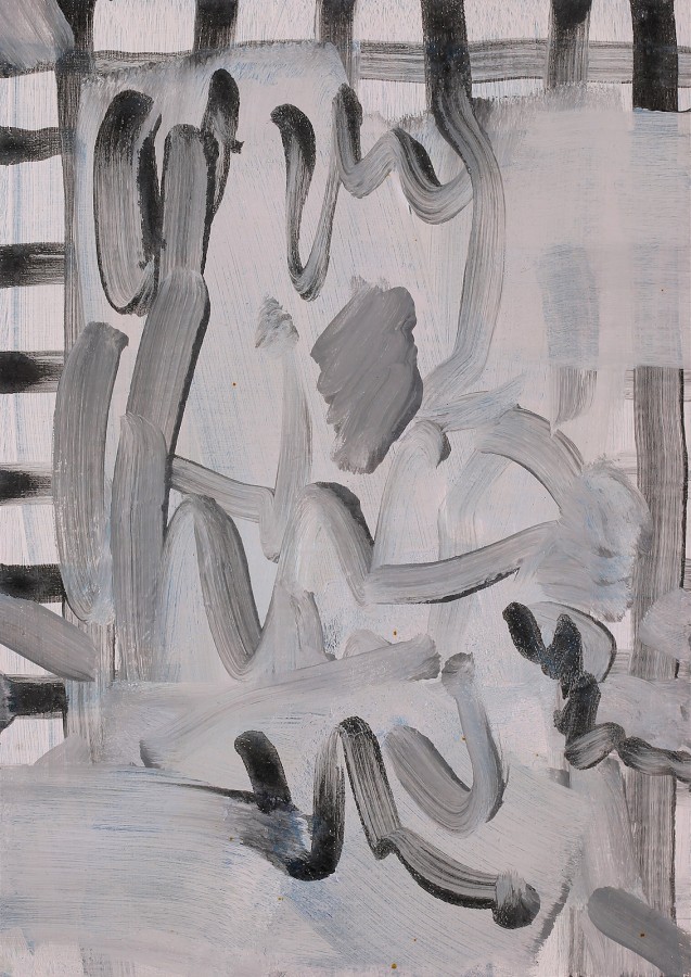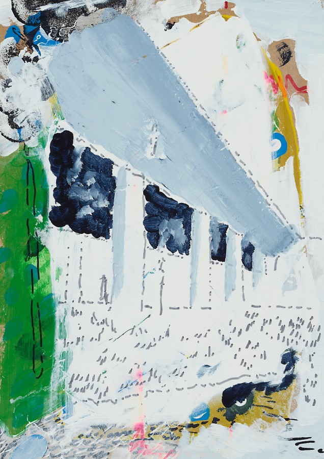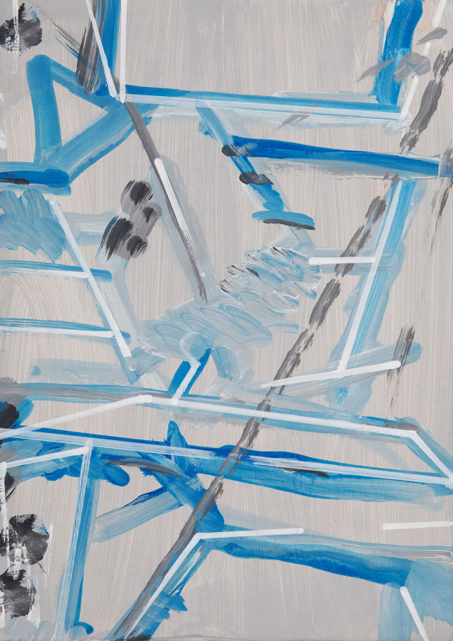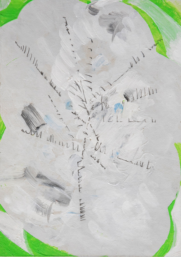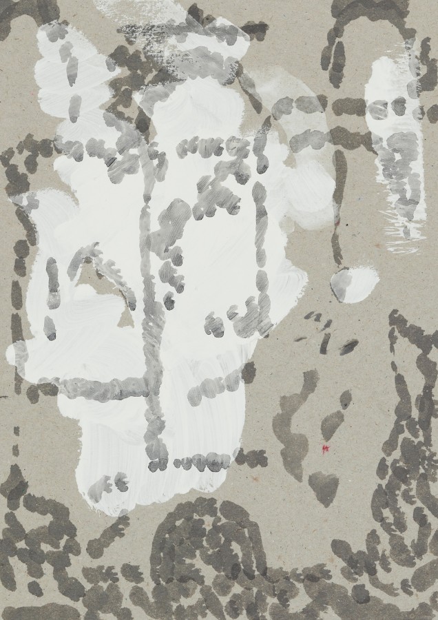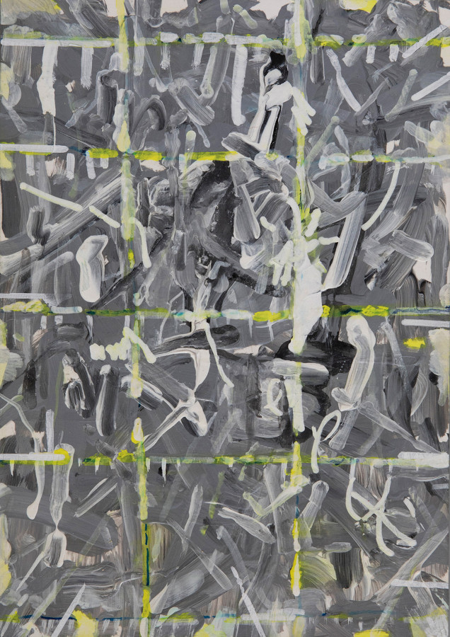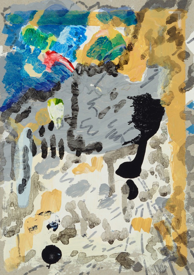 Acrylic, ink and marker on greyboard, 20.7 × 29.5 cm
