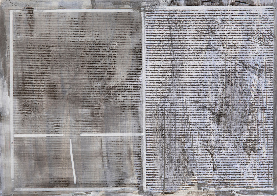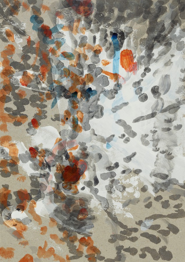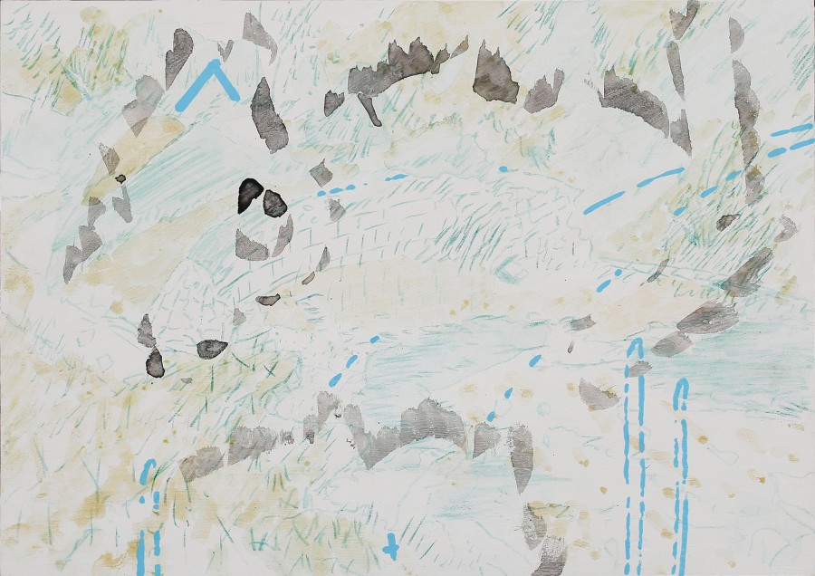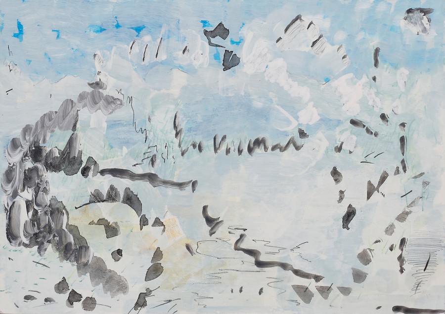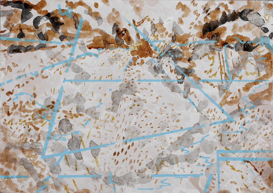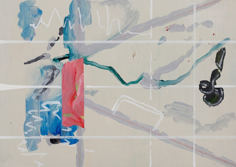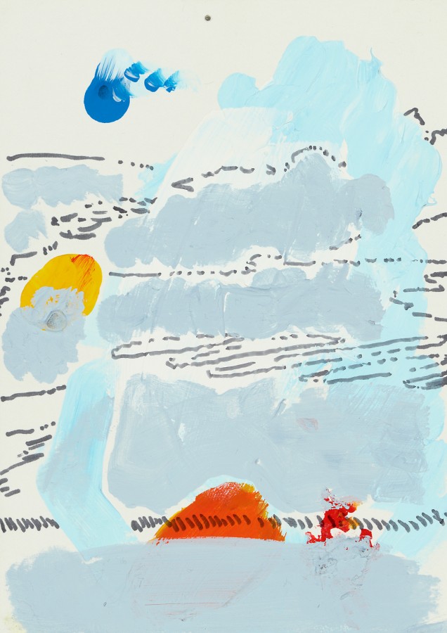 Acrylic, ink and marker on greyboard, 20.7 × 29.5 cm