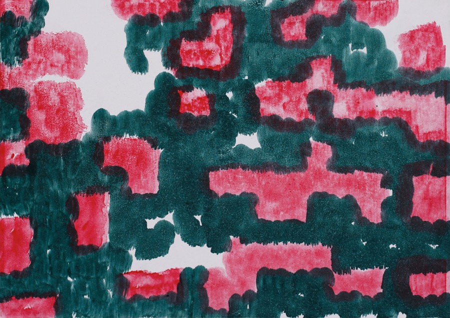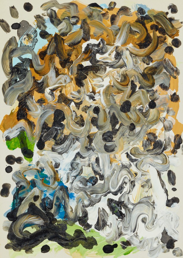 Acrylic (marker), gouache, ink and spraypaint on white cardboard, 20.8 × 29.5 cm