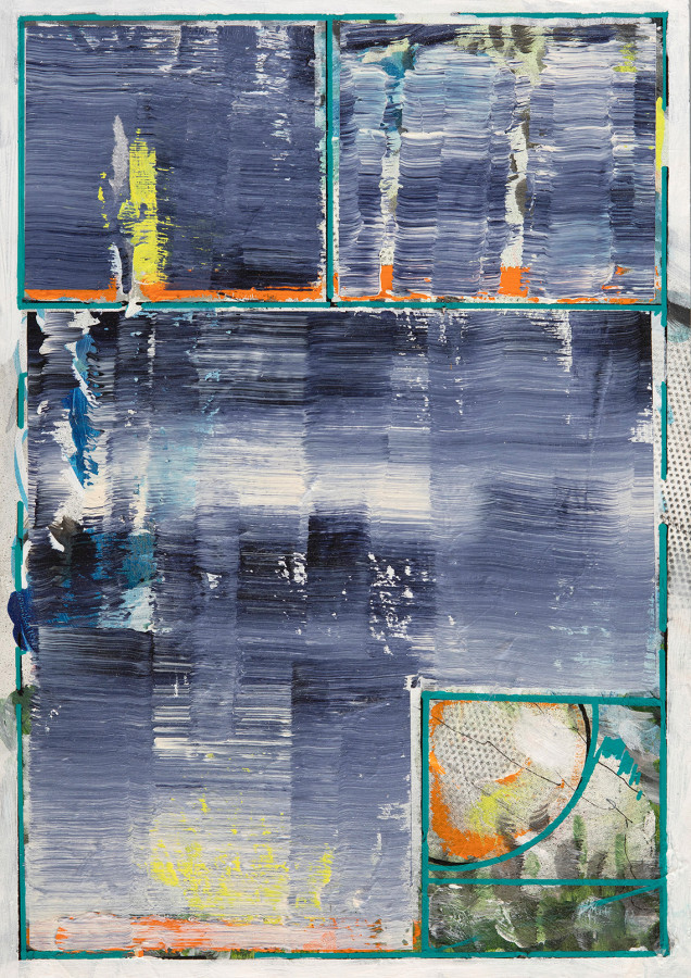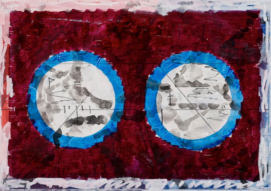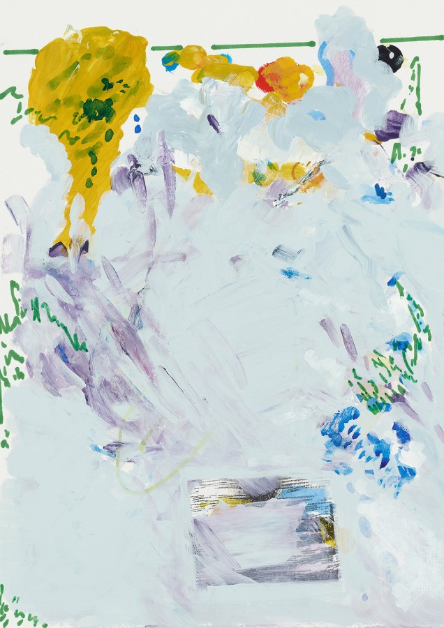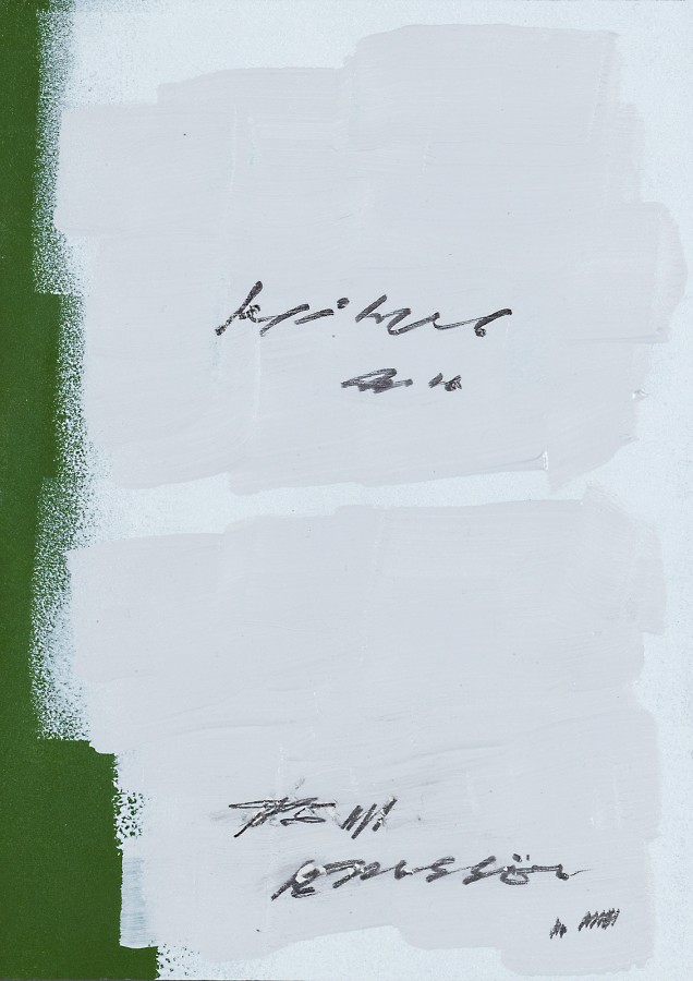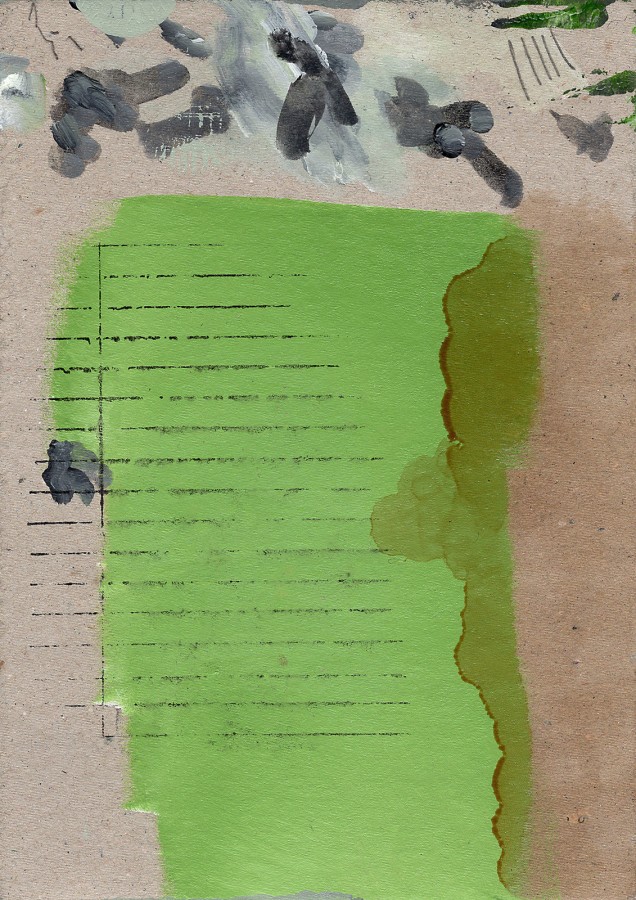 Acrylic, ink, oil and pencil on white cardboard, 20.8 x 14.7 cm