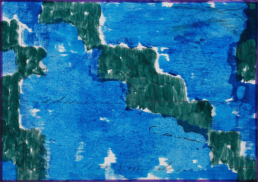 Acrylic, coloured pencil and shellac on white cardboard, 20.7 x 14.8 cm