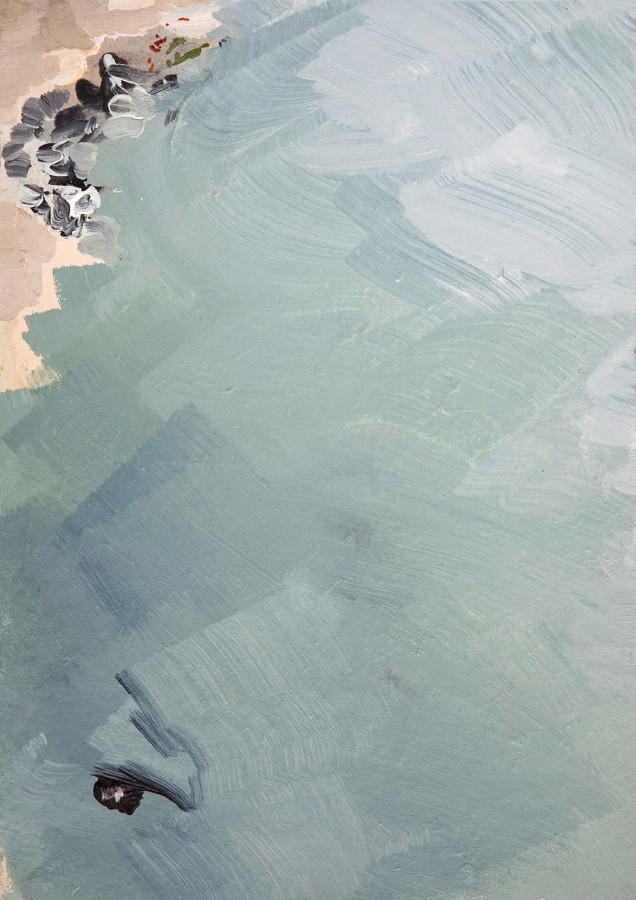 Acrylic and oil on white cardboard, 14.8 x 20.8 cm