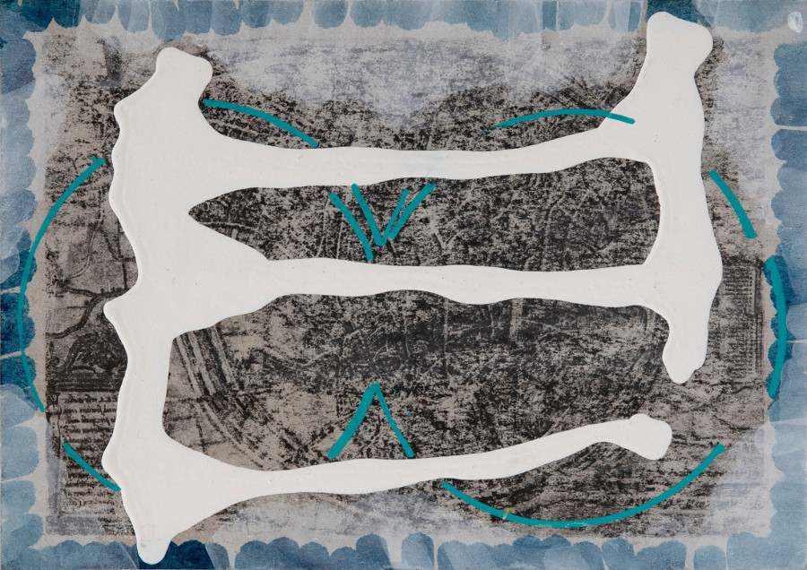 Acrylic and transfer on white cardboard, 14.7 x 20.8 cm