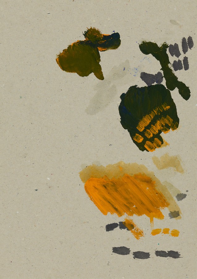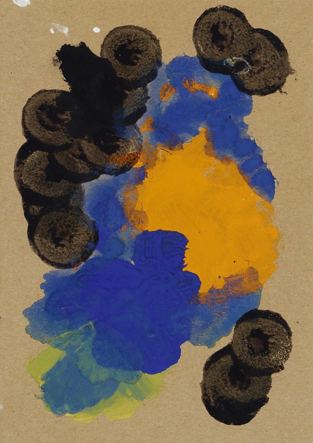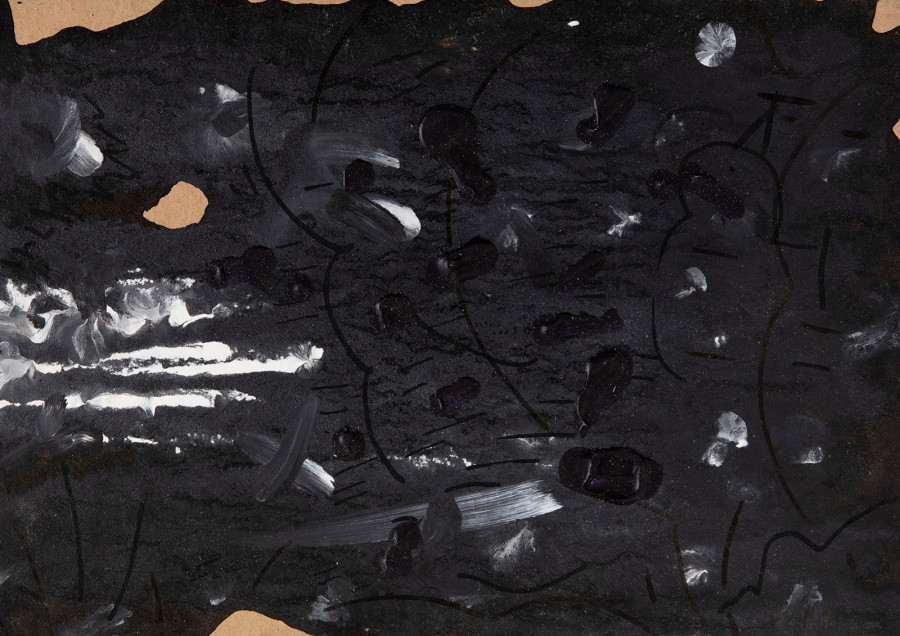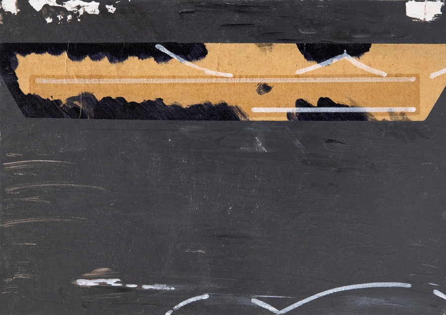 Acrylic, gouache and shoe polish on brown cardboard, 14 x 20.5 cm