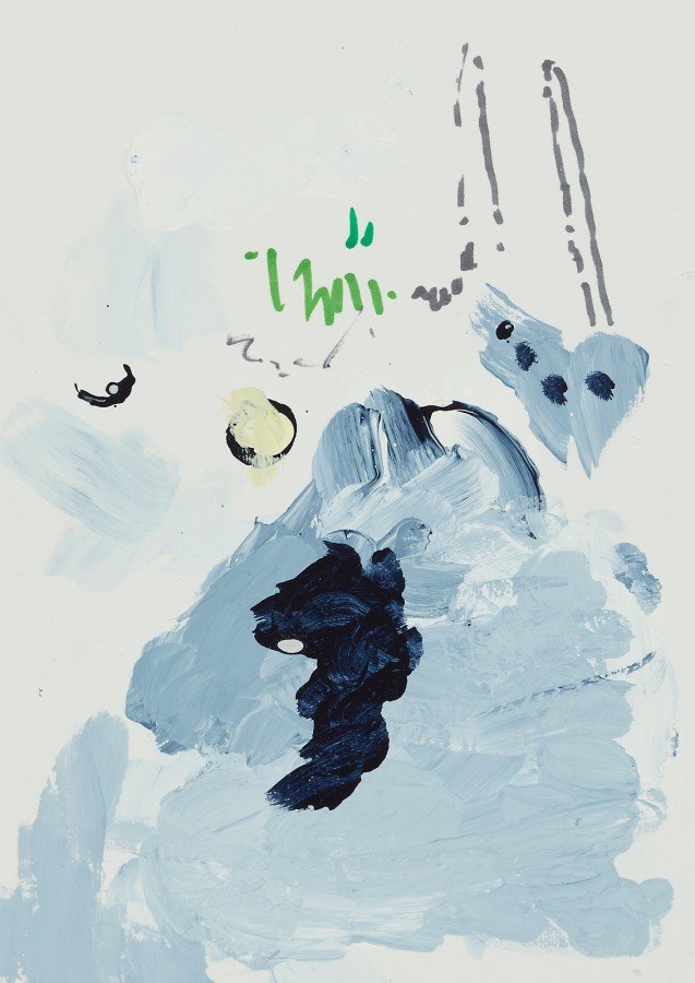 Acrylic, ink, marker and pencil on white cardboard, 14.8. x 20.9 cm