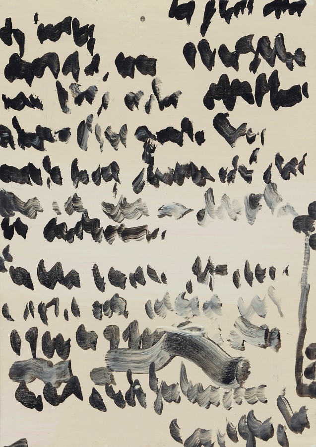 Acrylic and shoe polish on white cardboard, 14.5 x 20.5 cm