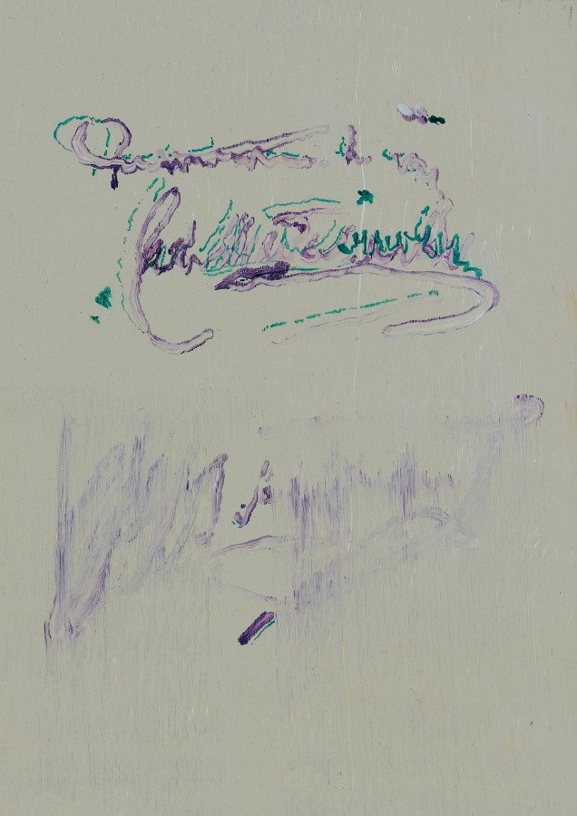 Acrylic, oil and pencil on white cardboard, 20.8 x 14.7 cm