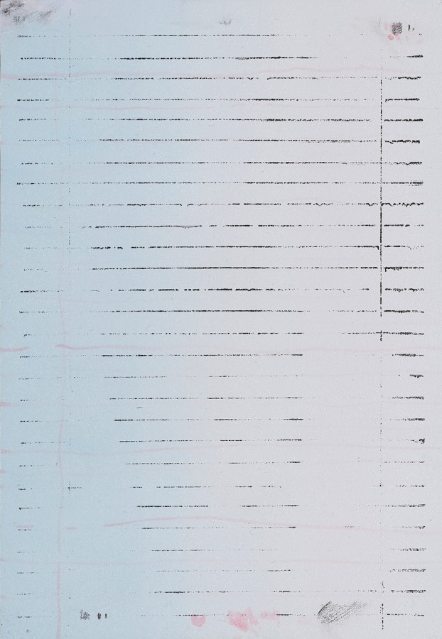 Acrylic (marker), pencil and transferred photocopy on white cardboard, 21 × 14.9 cm