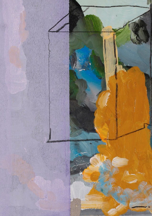 Acrylic, marker and pencil on greyboard, 14.7 x 20.7 cm
